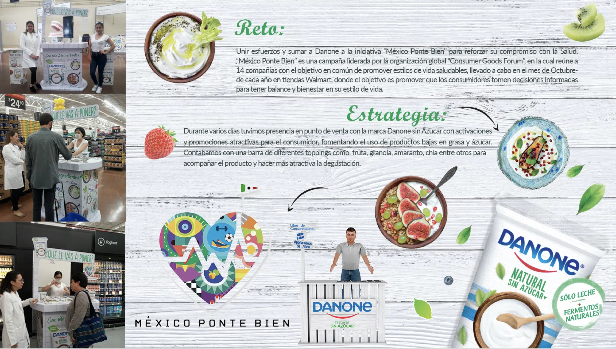 Unir a Danone con la iniciativa “México Ponte Bien” para promover la salud en colaboración con otras empresas. La iniciativa es liderada por el “Consumer Goods Forum” y busca promover un estilo de vida saludable en tiendas Walmart durante octubre.