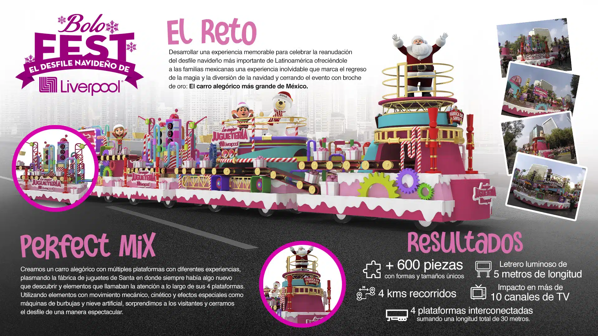 Reto: Crear una experiencia inolvidable para celebrar la reanudación del desfile navideño más grande de Latinoamérica y marcar el regreso de la magia navideña.
