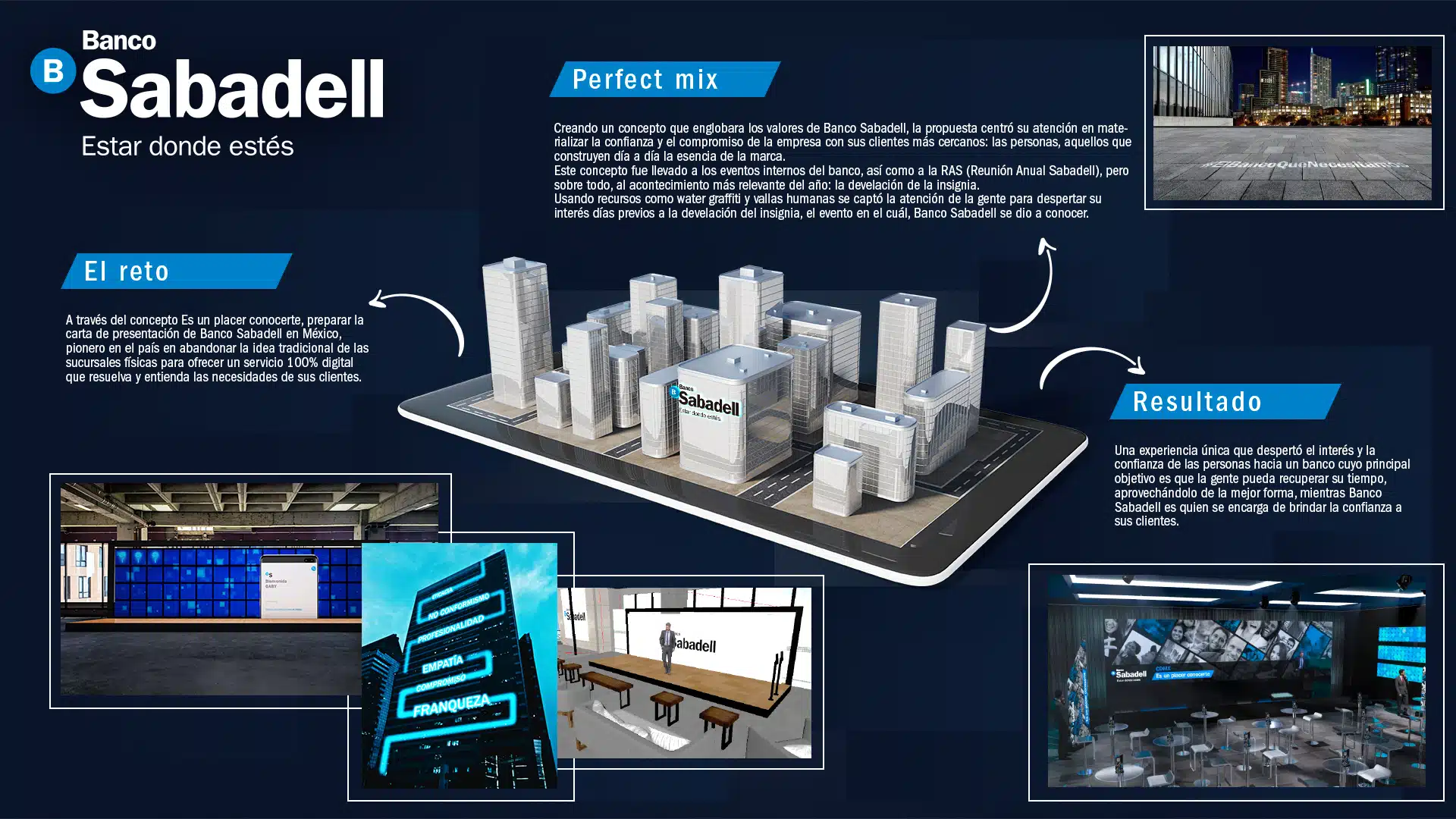 Banco Sabadell enfrentó el reto de presentar su propuesta de servicio 100% digital en México bajo el concepto “Es un placer conocerte”. Se enfocaron en transmitir confianza y compromiso hacia sus clientes más cercanos, destacando su compromiso con las personas.